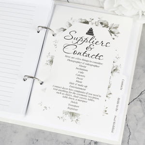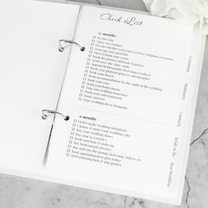 This ring-bound wedding planner includes sections for the ceremony, stationery, contacts, Bride to be and post wedding.