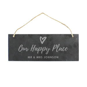 Personalised Our Happy Place Hanging Slate Plaque