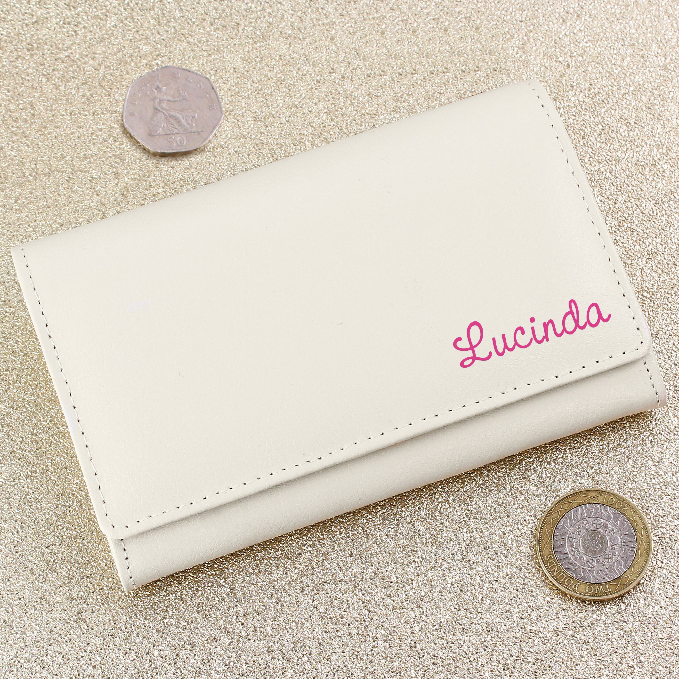This personalised cream purse is stylish and sophisticated gift for her on any occasion.
