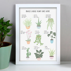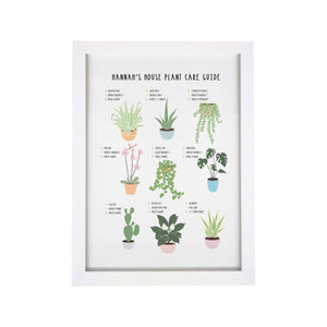 Personalise this plant themed A4 framed print with a name up to 12 characters. The text 's Houseplant Care Guide.' is fixed text and cannot be changed.