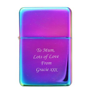 This rainbow lighter can be personalised with any message over 4 lines and up to 20 characters per line.