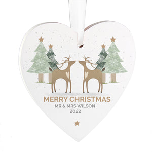 Personalised Reindeer Couple Wooden Heart Decoration