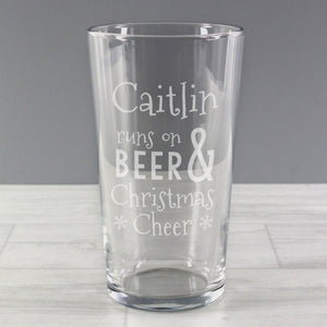 Personalised Runs On Beer & Christmas Cheer Pint Glass