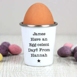 This cute free text egg cup is perfect for any morning breakfast of dippy eggs and soldiers.