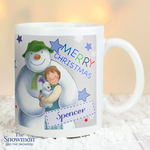 Our The Snowman and the Snowdog Blue Mug can be personalised with a name on the front up to 12 characters and a message on the back over 4 lines of text with up to 20 characters per line. The words 'Merry Christmas' are fixed text.