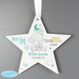 Personalised Tiny Tatty Teddy Dream Big Blue Wooden Star Decoration