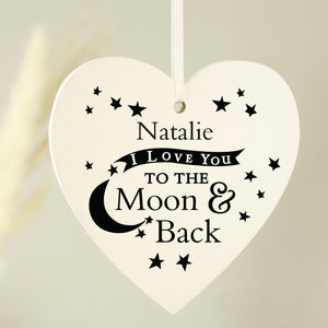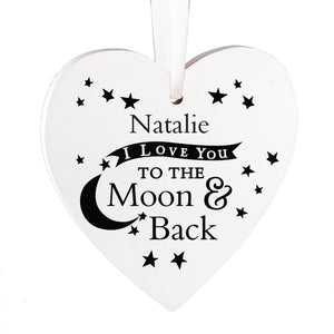 Personalised To the Moon and Back... Wooden Heart Decoration