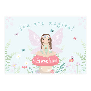 Personalise this toadstool fairy placemat with any name using up to 12 characters in length.