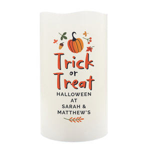 This beautiful and safe Personalised Trick or Treat LED Candle is the perfect addition to your Halloween Decorations