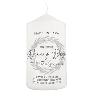 Personalised Truly Blessed Naming Day Pillar Candle