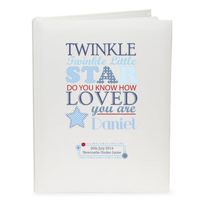 Personalise this Twinkle Boys Album with a name upto 12 characters and a message spread over 2 lines upto 20 characters per line.