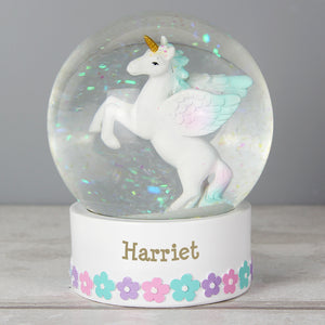 Add a touch of magic to any room with this Personalised Name Unicorn Snow Globe!
