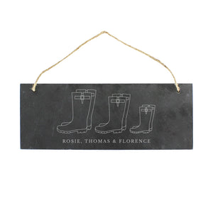 Personalised Welly Boot Family of Three Hanging Slate Plaque