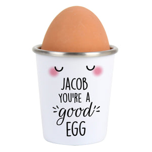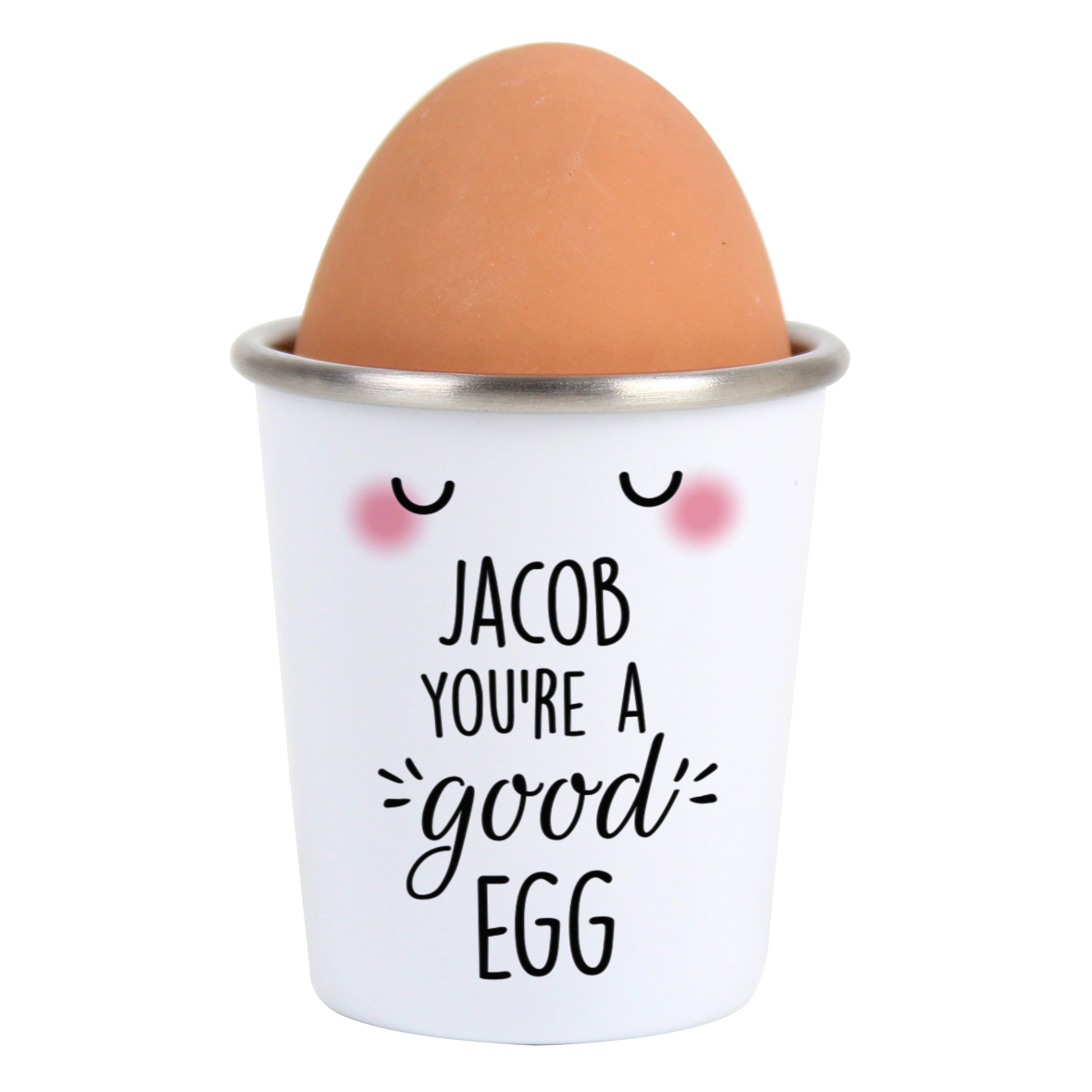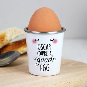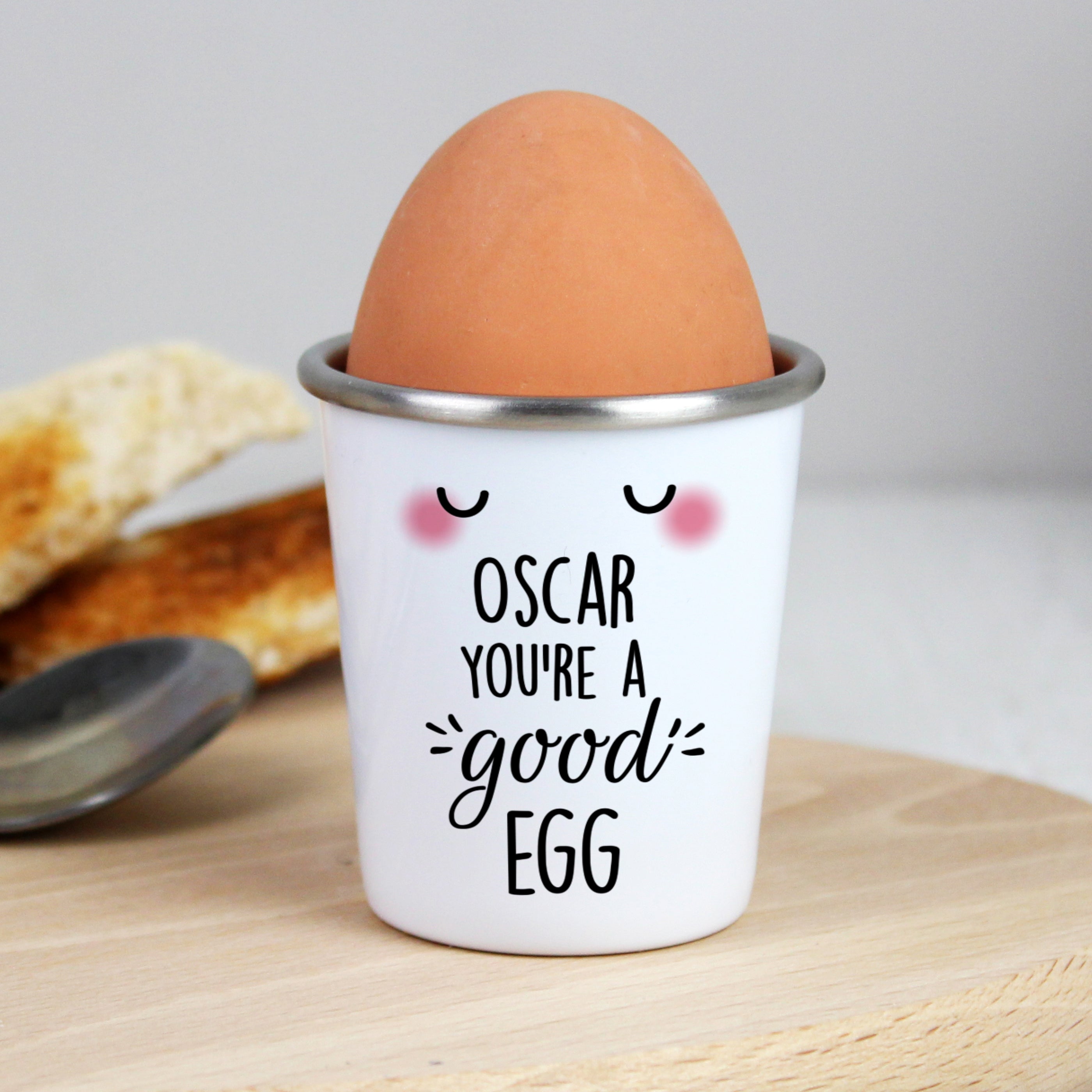This cute you're a good egg egg cup is perfect for an Easter morning breakfast of dippy eggs and soldiers.
