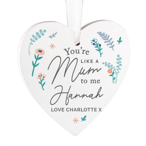 Personalised You're Like A Mum To Me Wooden Heart Decoration