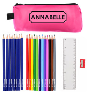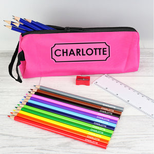 A great gift for school this Pink microfibre pencil case is embroidered with any name up to 15 characters, the pencils & crayons are also personalised with this name.