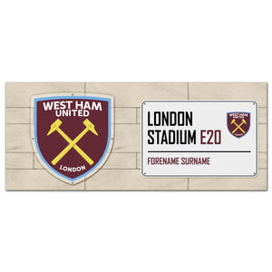 Our personalised Street Sign Mug is a fabulous present for any West Ham United FC fan and is approved and fully licensed by the club. We merge your chosen Forename and Surname onto the Stadium Street Sign design that any West Ham United FC fan will recognise.